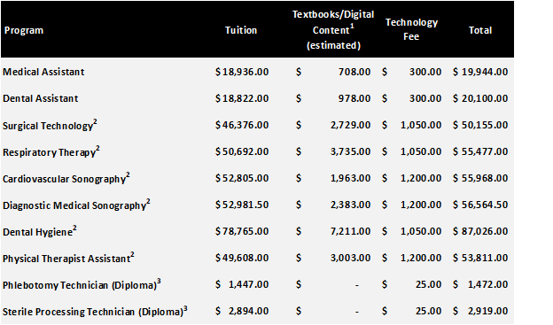 Tuition and direct expenses vary by program and are listed above. The indirect expenses below are based off a monthly average and may be prorated when academic years are shorter or longer. Indirect expenses reflect an average cost of the components that fall within the category. For additional cost of attendance budgets please contact the Financial Aid office.